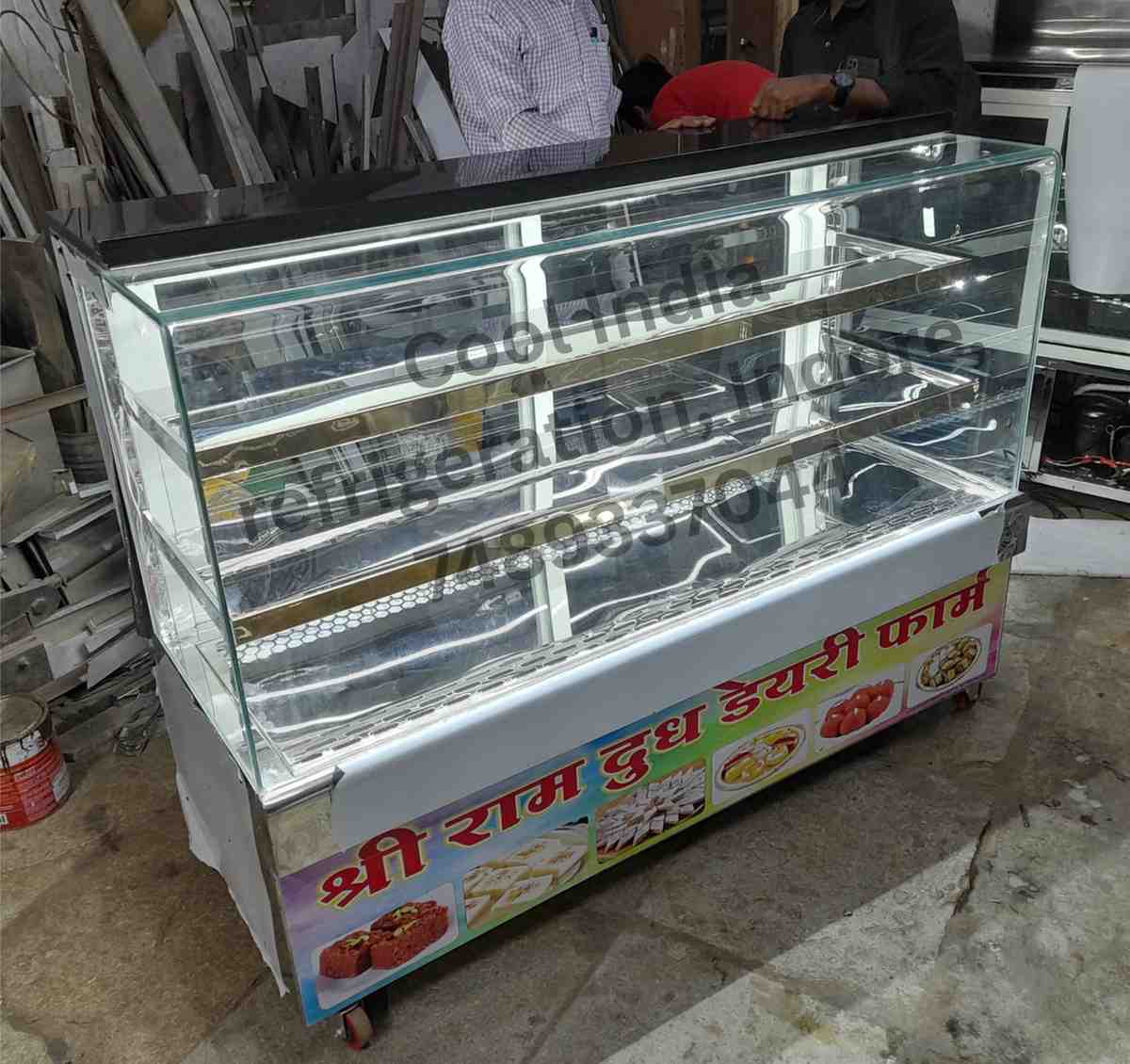 Cool India Refrigeration and Kitchen Equipment, a leading and trusted Sweet Display Counter Manufacturer in Indore, offers high-quality display counters for bakeries, cafes, restaurants, hotels and sweet shops. Our Sweet Display Counters are designed to showcase cakes, pastries, and bengali sweets attractively while keeping them fresh. Being a reliable Sweet Display Counter Manufacturer in Indore, we use durable stainless steel and curved bend glass for long-lasting performance.